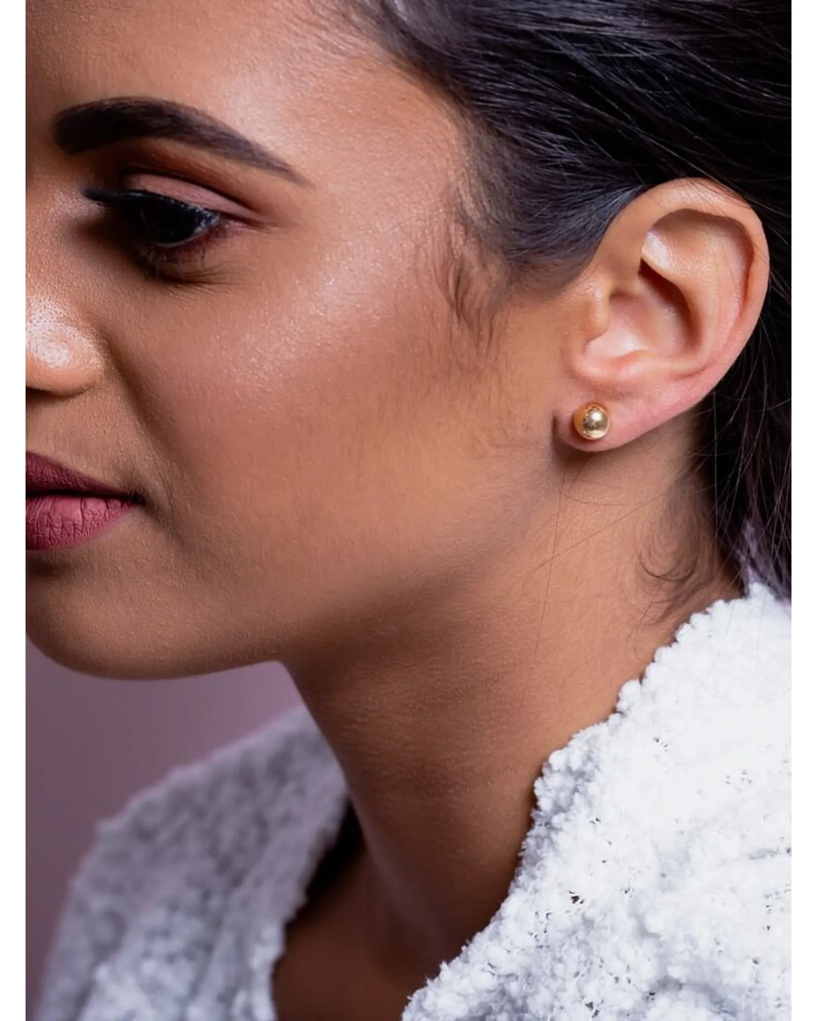 Um brinco básico que todas deveriam ter! Esse brinco de bolinha lisa folheado em ouro 18k tem uma tamanho ideal para o dia a dia e um design neutro que cabe em qualquer look e ocasião. Você pode usá-lo sozinho, ou com outro brinco no segundo furo ou até ele no segundo furo com uma argola no primeiro, bem fashionista!