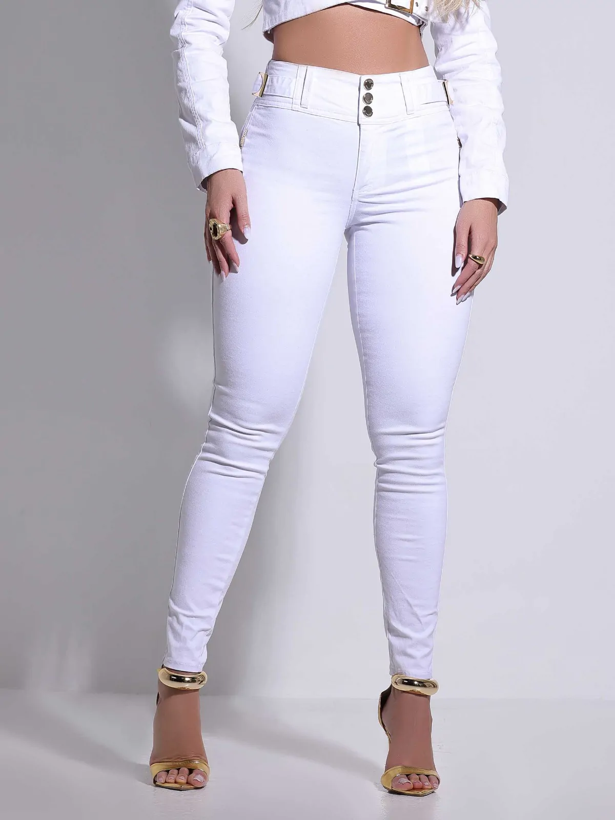 A Calça Branca Feminina Premium com Detalhes Dourados é uma peça perfeita para mulheres que desejam unir conforto e estilo em um único visual. Confeccionada com o tecido premium, composto por 91% algodão e 6% elastomultiéster, essa calça proporciona alta flexibilidade e um ajuste impecável ao corpo, valorizando as curvas femininas. O cós ajustado com botão de pressão garante segurança e praticidade, enquanto o design skinny acompanha a silhueta, tornando essa calça ideal para compor looks elegantes e modernos.