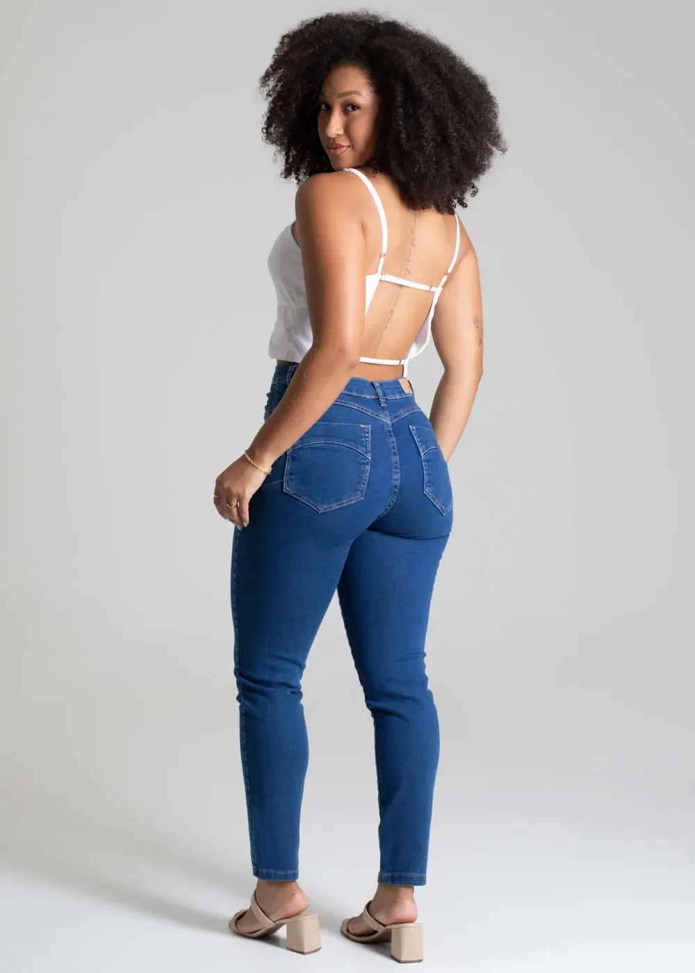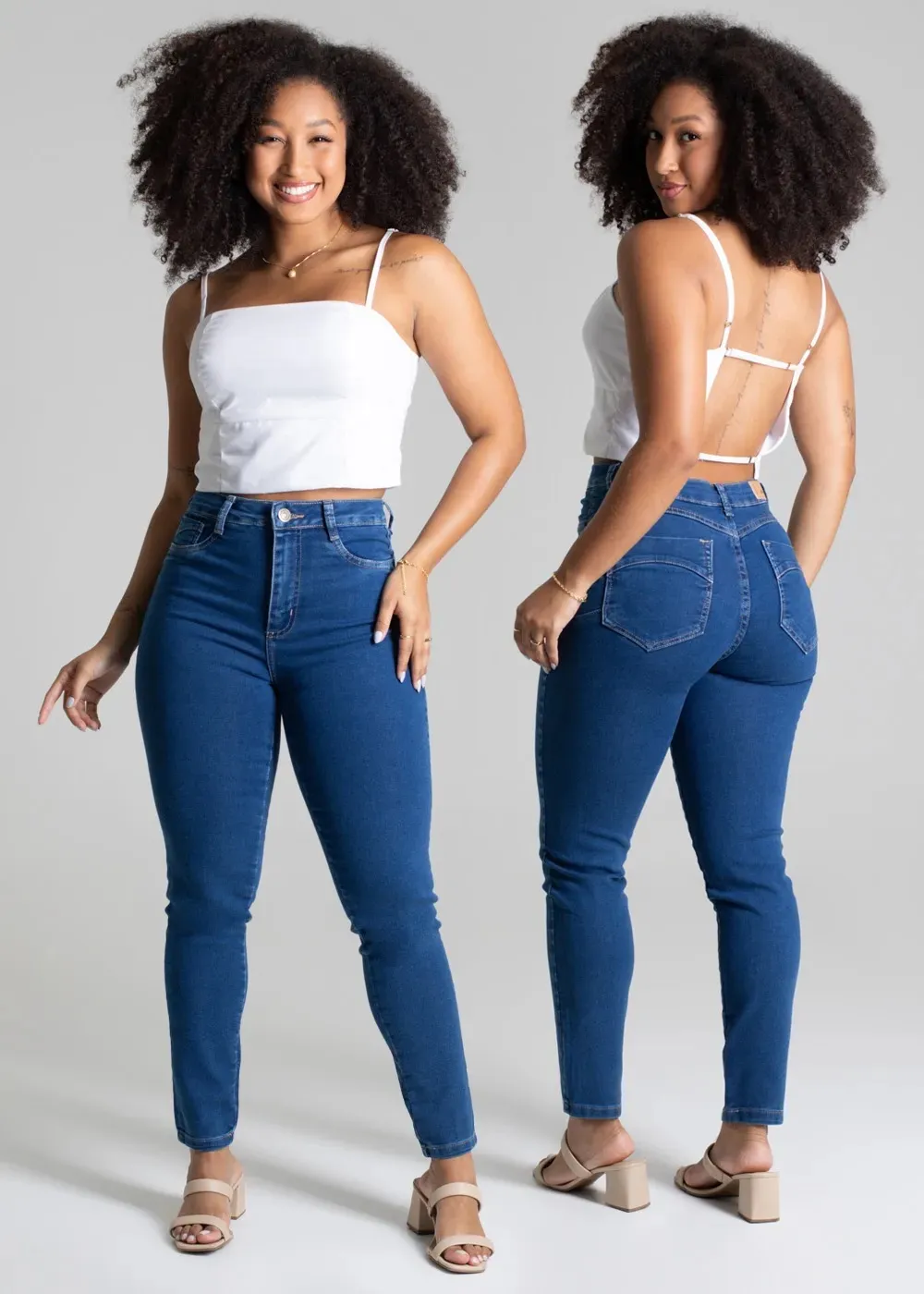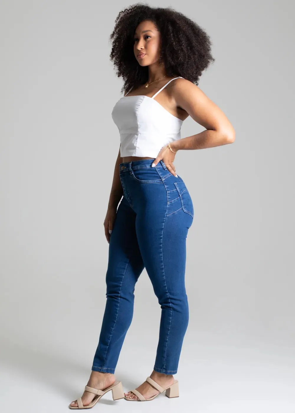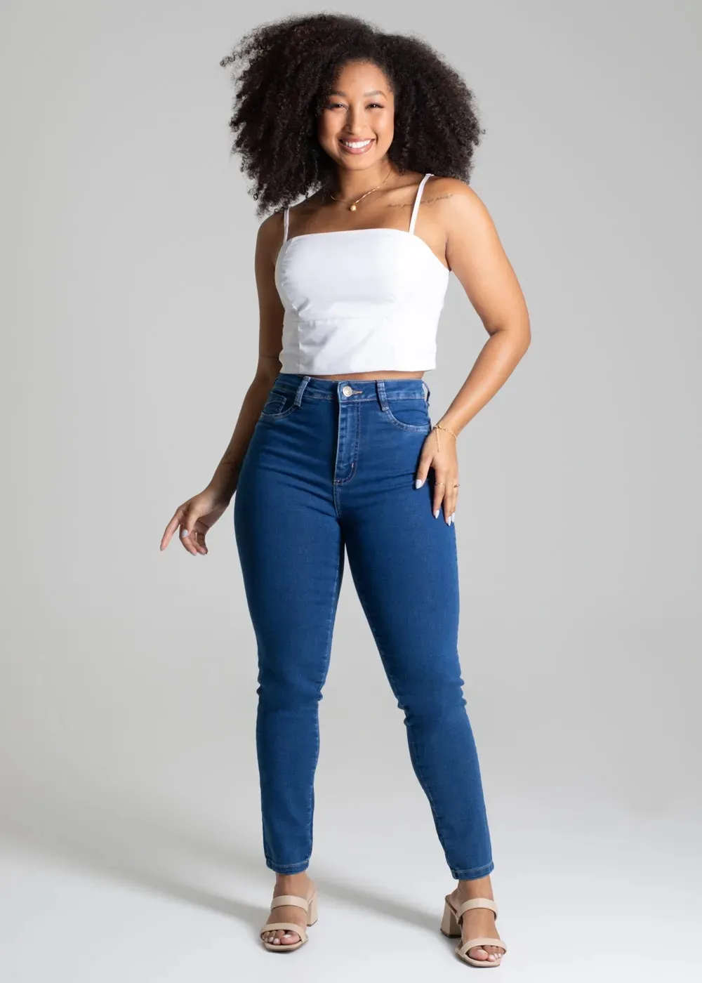 Cintura média Fechamento com botão metálico e zíper