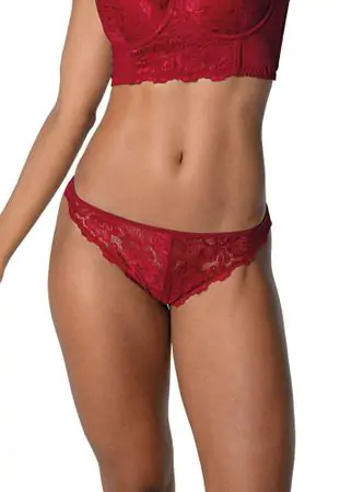 Frente em renda elástica com leve transparência, Costas em tule elástico duplo.