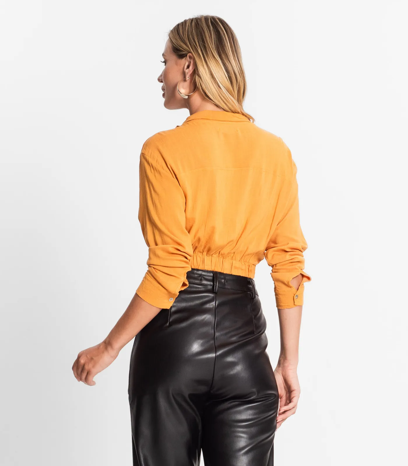 A camisa feminina Endless é feita de Air Viscose Slub Prime. Possui decote em formato de V com acabamento em pesponto, gola dupla, frente dupla transpassada com pregas na barra. Nas costas, detalhe de recorte com pesponto e elástico na barra pra melhor ajuste e conforto. Manga longa com fechamento por botões nos punhos. É um item confortável e estiloso para o outono e inverno