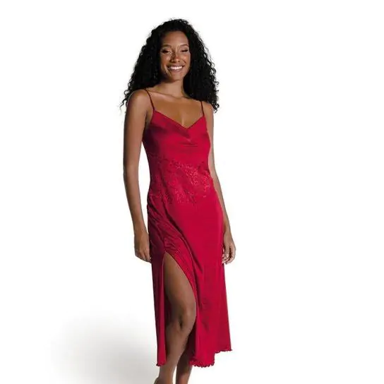 Camisola Longa DeMillus em Jersey microfibra, macio e confortável. Detalhe de renda na cintura com leve transparência.
