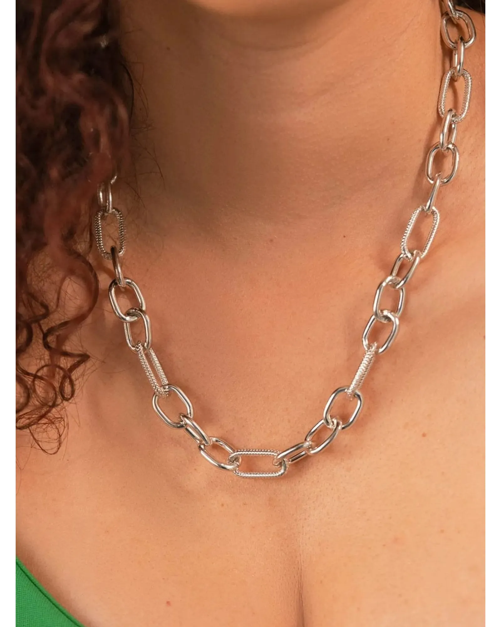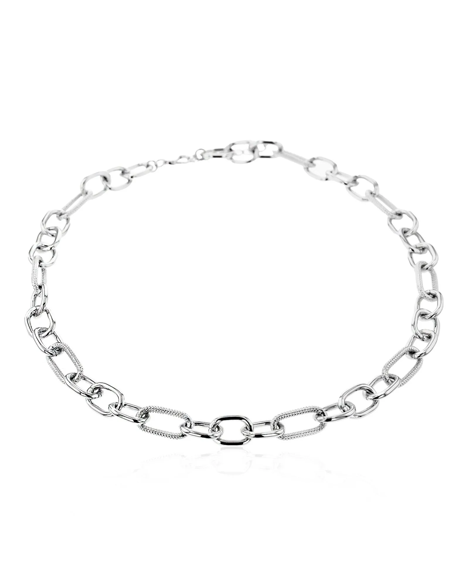 A choker corrente folheado em ródio branco com um design texturizado é uma joia incrível que adiciona um toque de elegância e sofisticação a qualquer look. O acabamento brilhante proporciona um brilho intenso que certamente atrai a atenção de todos ao seu redor. Choker perfeita para quem busca uma joia de qualidade e bom gosto que pode ser usada em diversas ocasiões, desde eventos formais até ocasiões mais casuais. Sem dúvida, é uma joia única e deslumbrante que irá encantar os amantes de acessórios sofisticados e modernos.