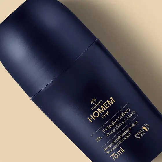O Desodorante Roll On Homem Dom tem 48 horas de proteção e a fragrância que você já conhece. Sinta essa agradável sensação de frescor e bem-estar o dia todo sem manchar as roupas.