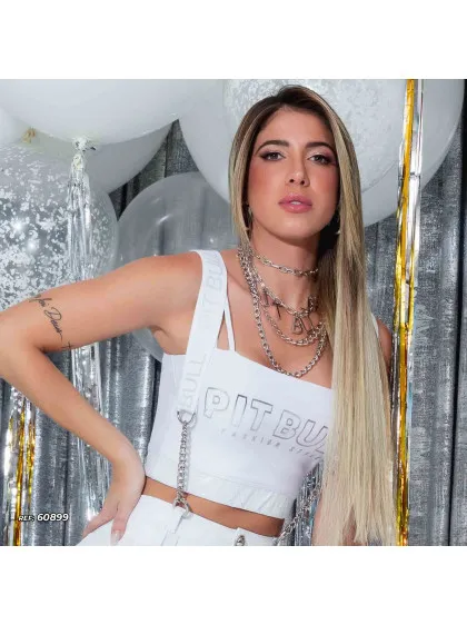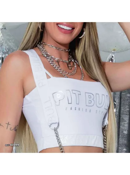 Detalhes: Cropped branco em malha leve e macia, que promove muito mais conforto, é rica em elastano com logomania feita em silk de alto relevo prata. Presença de alça dupla, bojo removível para sustentação e malha laise com bordados vazados no cós da blusa, que dá mais delicadeza e feminilidade à peça.