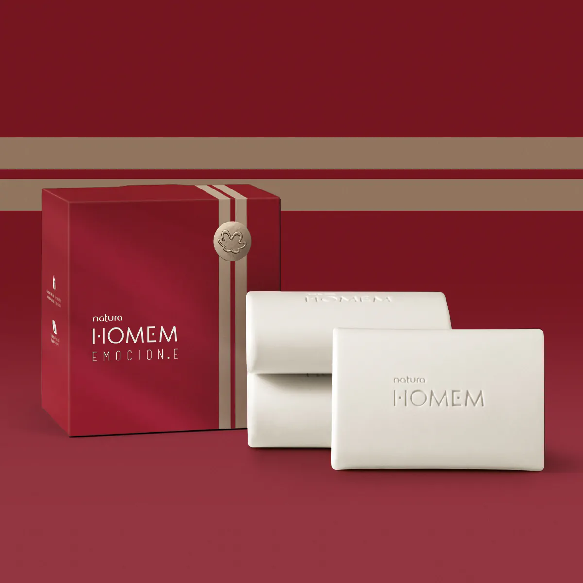 Para garantir que todos sintam-se lembrados, escolha o Presente Natura Homem Emocion.e Trio de Sabonetes. São três sabonetes de 110 g cada, formulados com manteiga de cacau e glicerina vegetal para um barbear suave e confortável, com fácil deslize da lâmina. Limpa sem ressecar a pele e perfuma o corpo todo com seu aroma amadeirado. Para deixar esse presente ainda mais especial, ele vem em uma caixa com uma fita metalizada estampada.