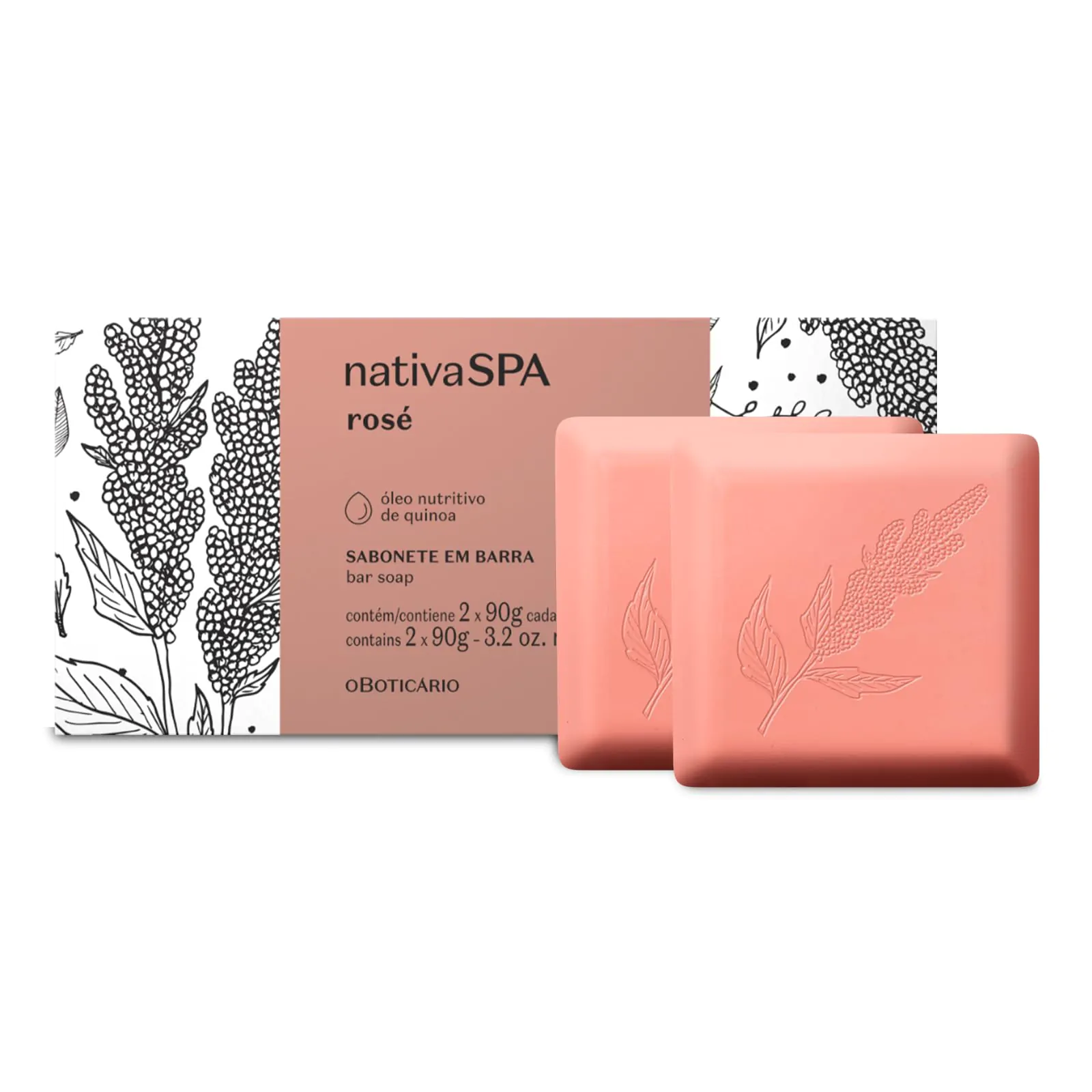 A combinação de extratos das rosas Damascena, Bourboniana, Mosqueta e Branca com óleo nutritivo de Quinoa resultou na fórmula que trata profundamente a pele. O Sabonete em Barra Nativa SPA Rosé limpa a pele enquanto perfuma delicadamente.
