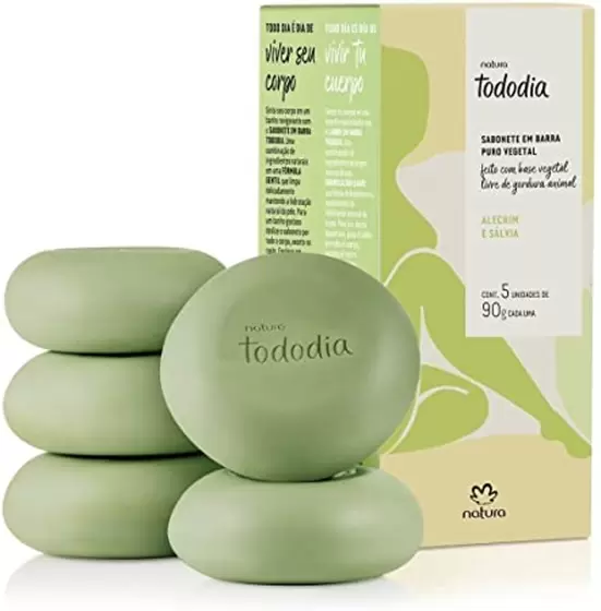 O Sabonete em Barra Tododia Alecrim e Sálvia promoveuma sensação agradável, enquanto limpa e deixa a pele maciae sedosa.