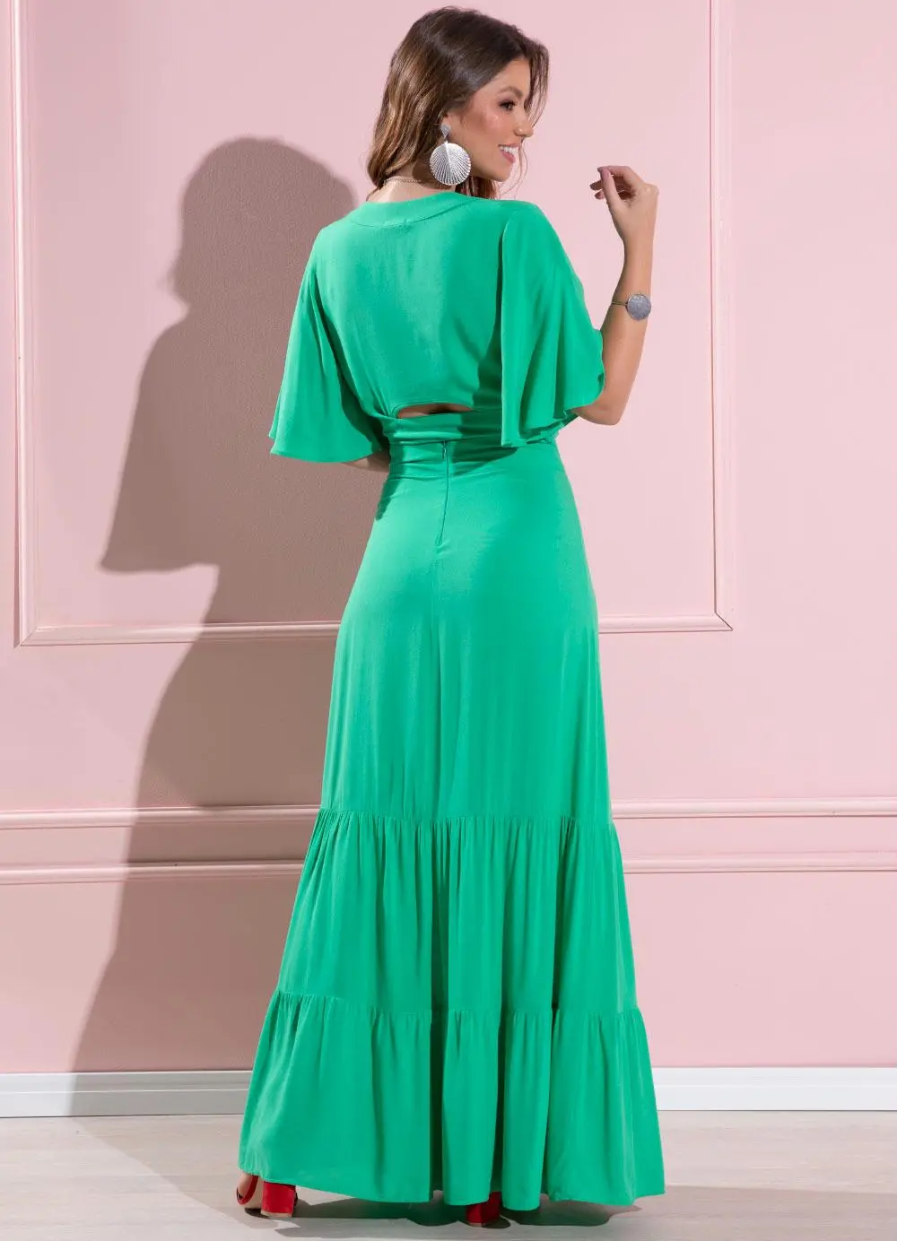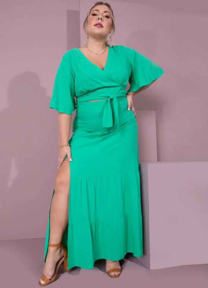 Saia longa verde com recortes e fen...