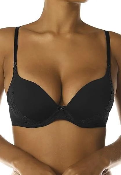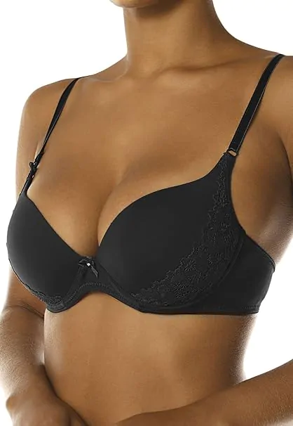Possui taças em espuma moldada e detalhes em renda no bojo.