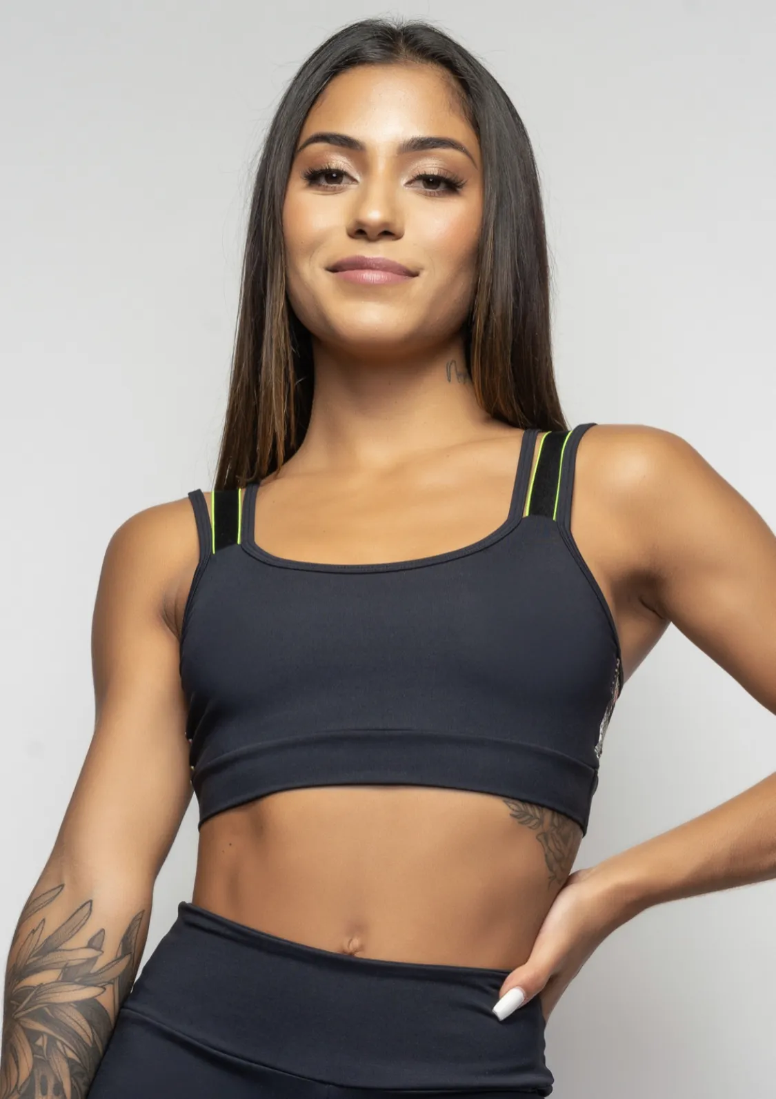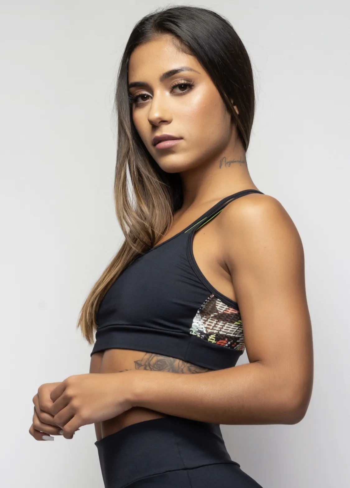 O Top Colors é a peça perfeita pra deixar seu Look Fitness cheio de estilo. Desenvolvido em Poliamida tem ajuste perfeito e oferece suporte e sustentação. Possui abertura para bojo, alça de elástico e recorte em tela colorida super descolada que confere respirabilidade e conforto à peça.