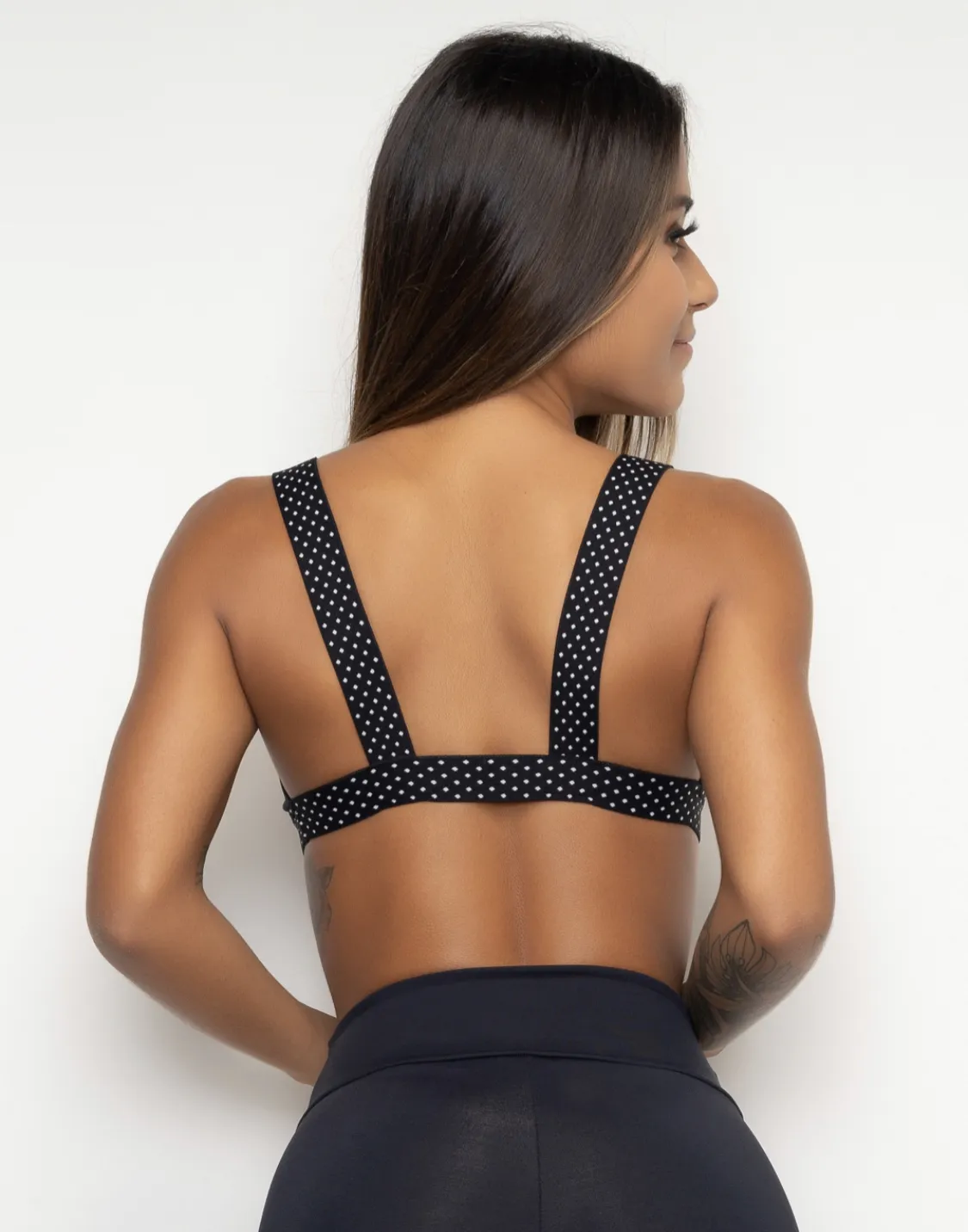 Design moderno e tecido de alta qualidade são os diferenciais do Top Fitness Poá preto. Alças de elástico dão suporte e distribuem o peso igualmente.