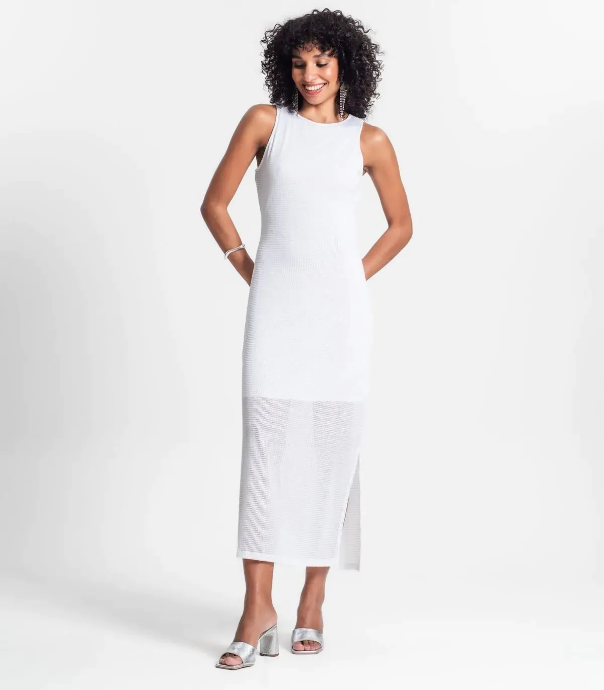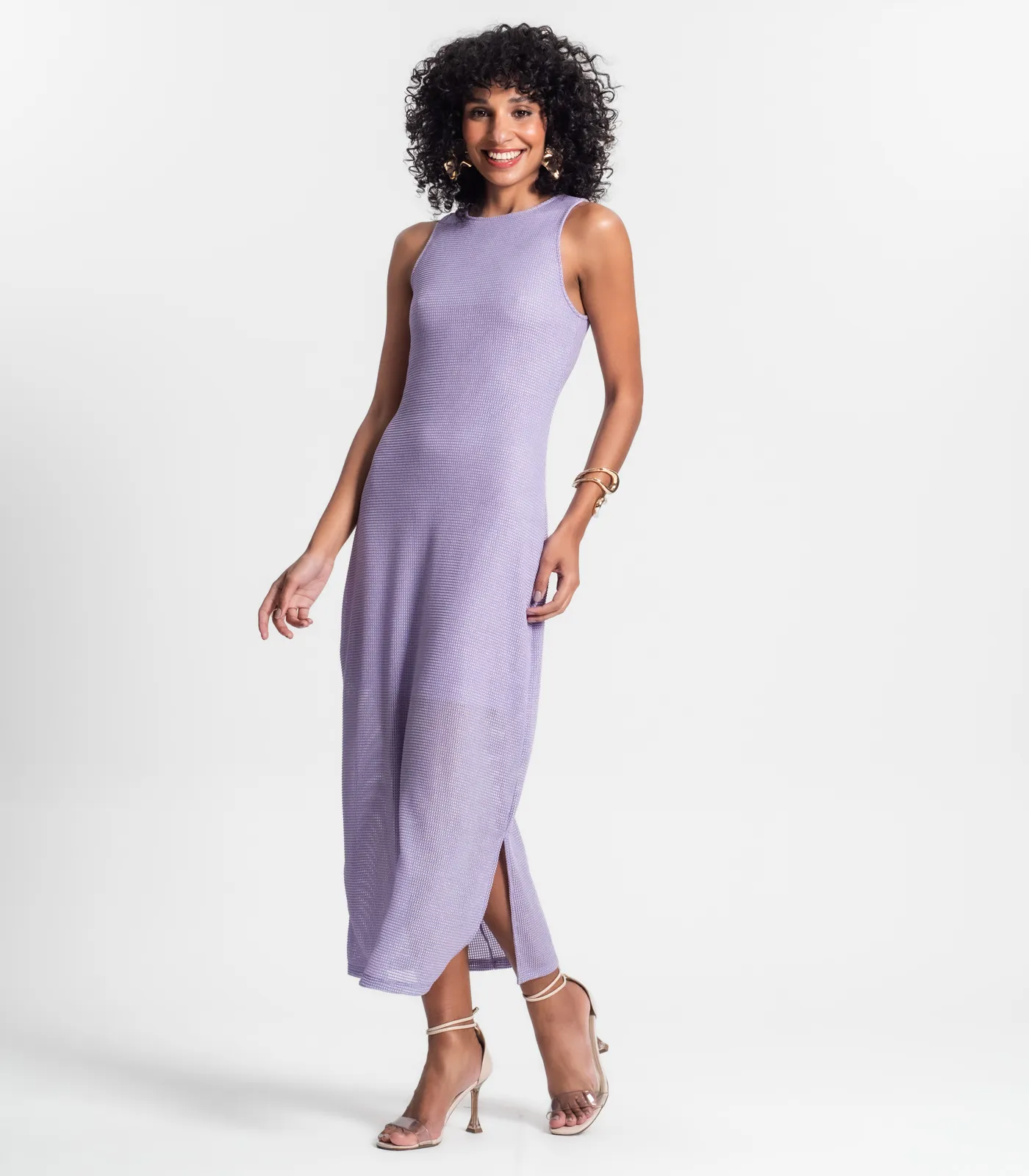 O Vestido Longo com Fenda Rovitex é uma peça sofisticada, confeccionada em malha screen shiny que proporciona um brilho sutil e um caimento elegante. O vestido conta com decote e cavas com forro, garantindo conforto e uma melhor estrutura. O forro interno é mais curto, criando um efeito de transparência sutil. A fenda lateral no lado esquerdo da peça adiciona um toque de sensualidade e sofisticação, tornando este vestido ideal para eventos especiais e ocasiões formais.